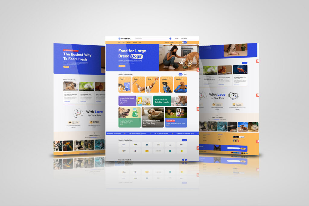 Fresh Feed Store is a WordPress WooCommerce pet food store built with the WoodMart theme, designed for fast performance and high conversion.